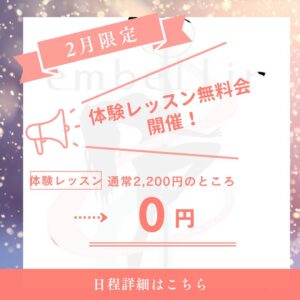 体験レッスン料金は上記日程に限り無料とさせて頂きます。